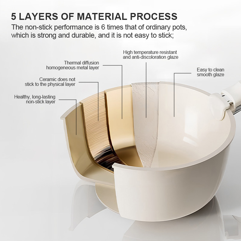 With a 3.5-layer material process, its non-stick performance is six times that of ordinary cookware. It is sturdy and durable, and less prone to sticking.