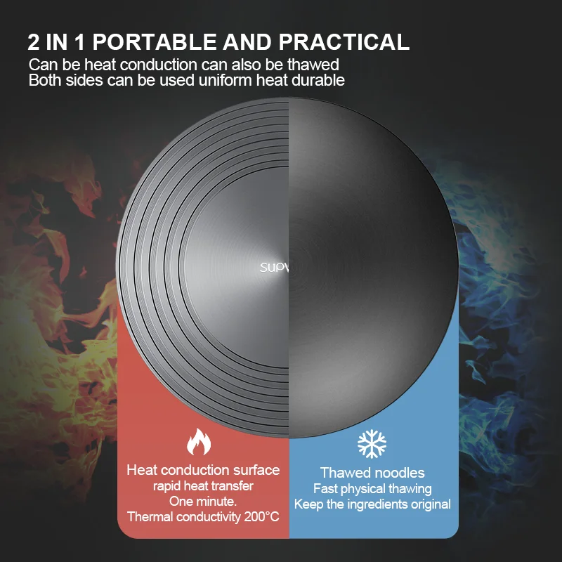 2. New upgrade: It serves as both a heat conduction plate and a defrosting plate. It heats directly with an open flame, conducts heat evenly, blocks open flames, and protects the pot body