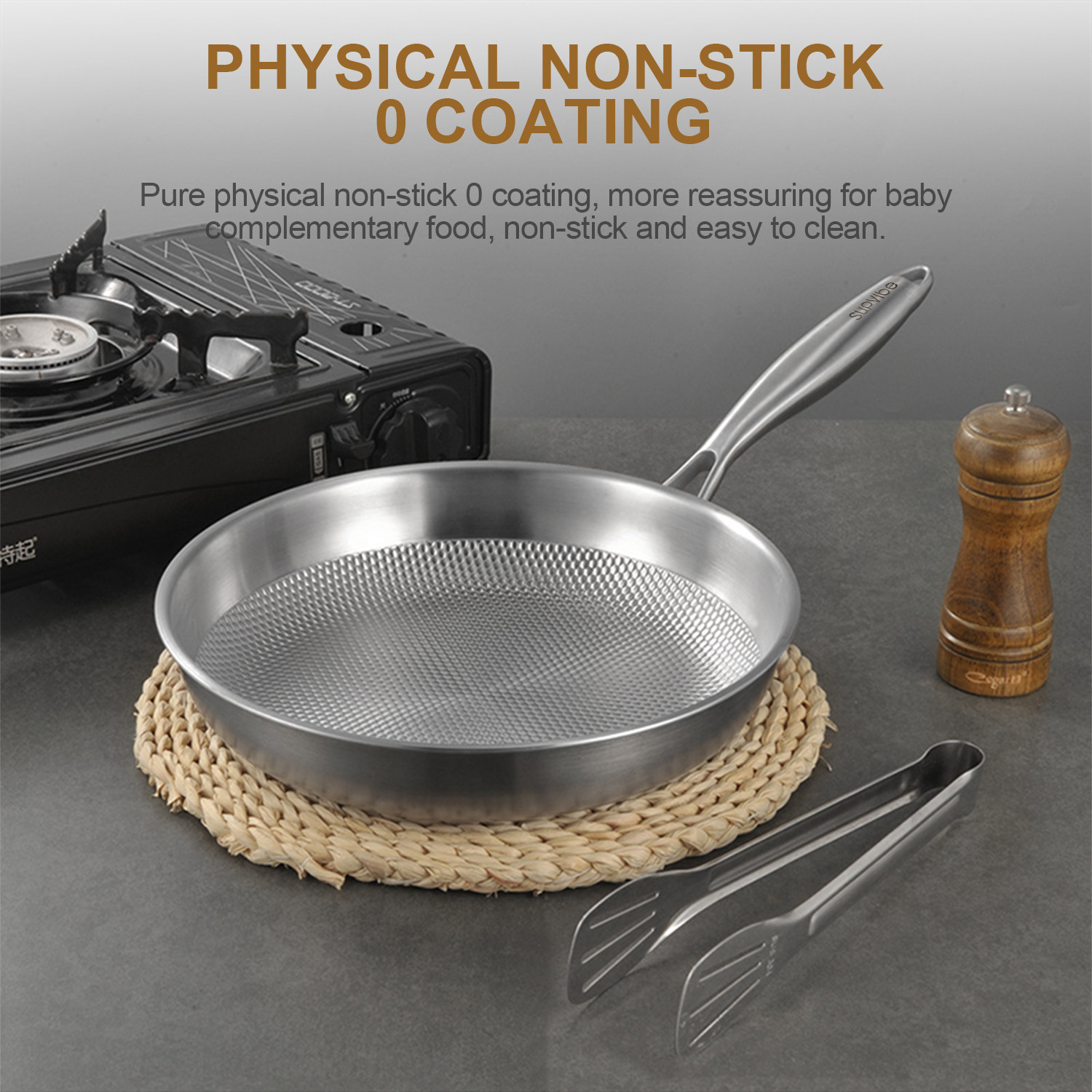 1.304 food-grade stainless steel material, pure physical non-stick 0-coating, more reassuring for baby complementary food, non-stick and easy to clean