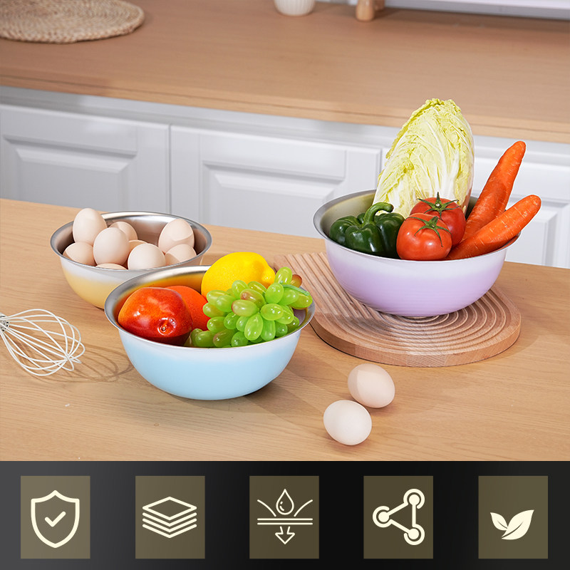 5. The deepened and widened design ensures no splashing when cracking eggs, making it more worry-free to use. It also makes it more convenient to marinate meat and mix salads