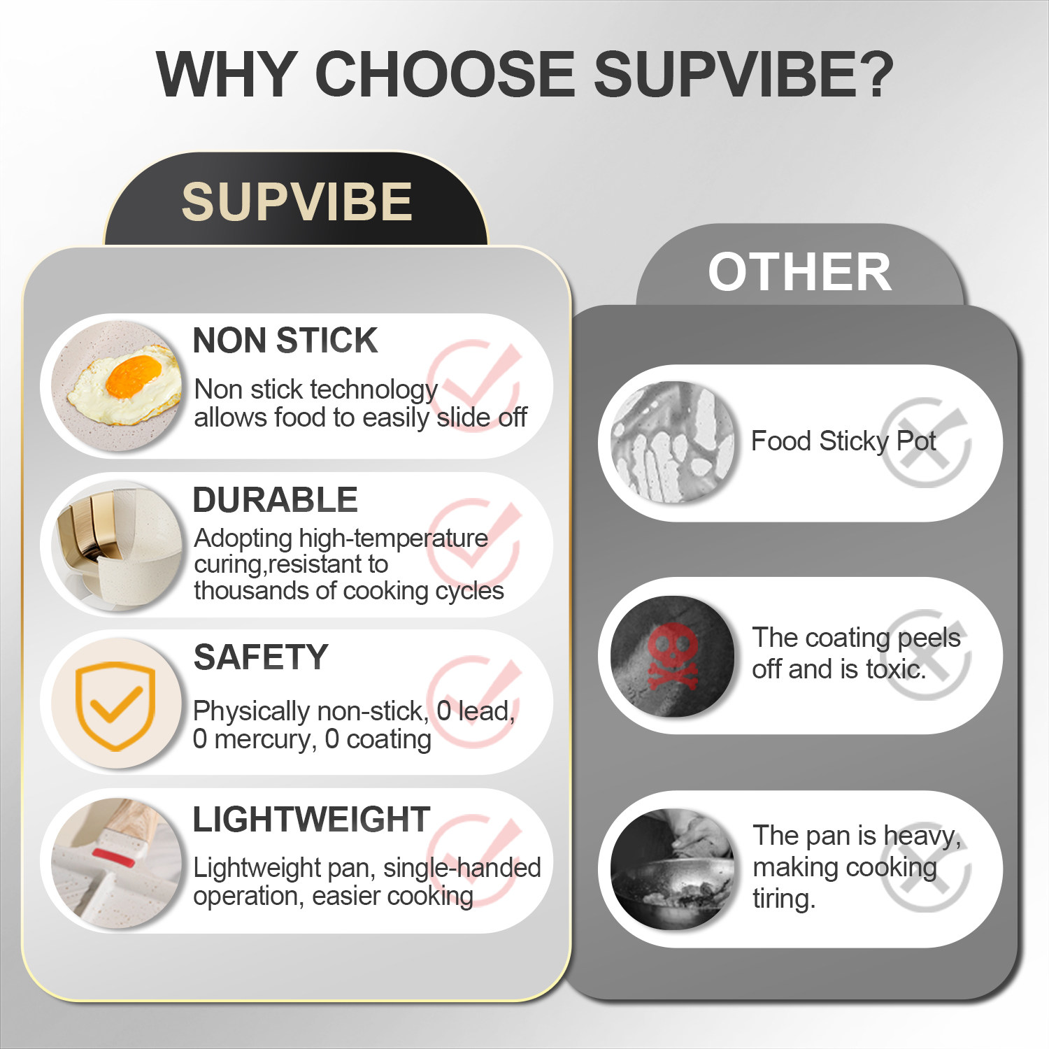 2. Light concept: High-strength lightweight base material, effortless to hold the pot