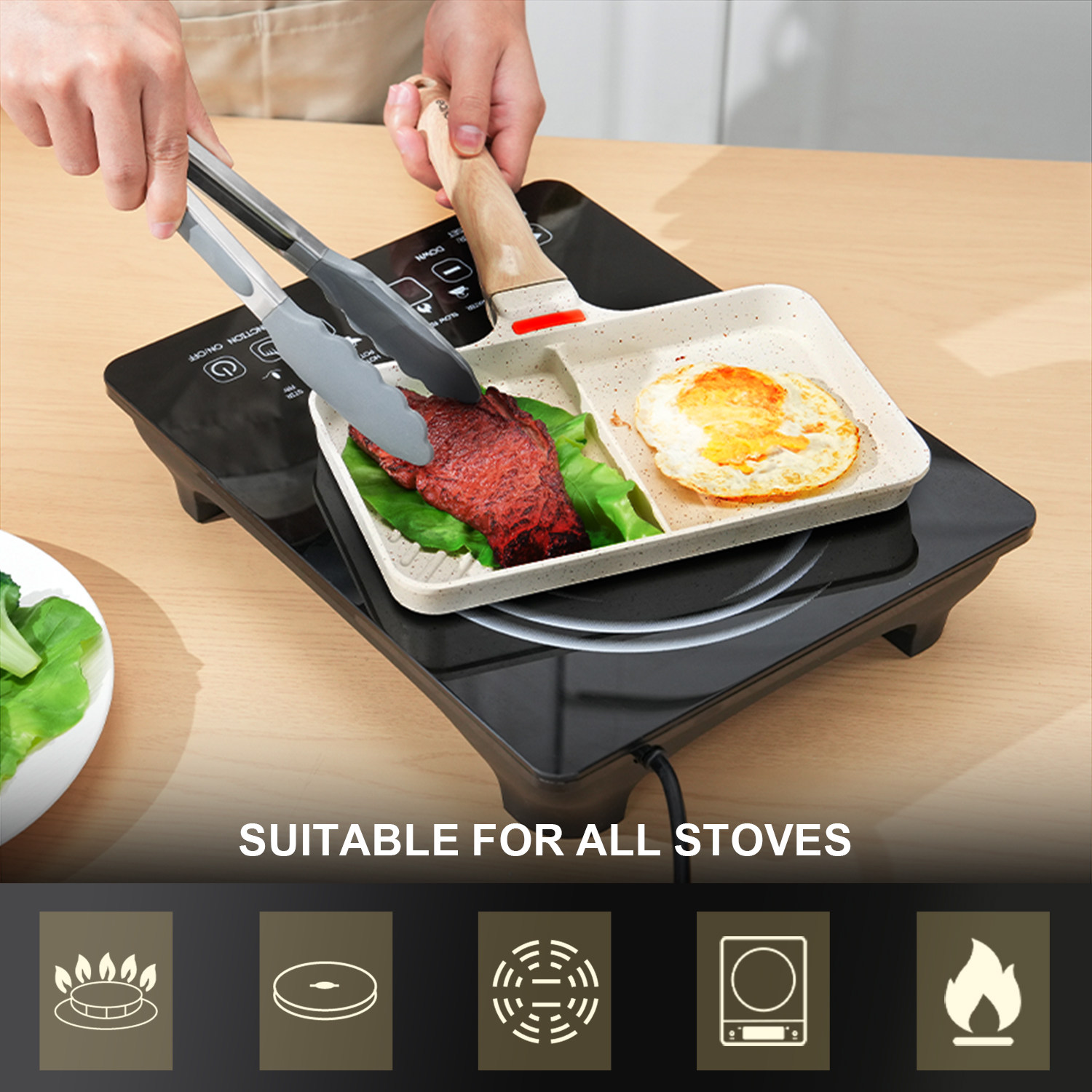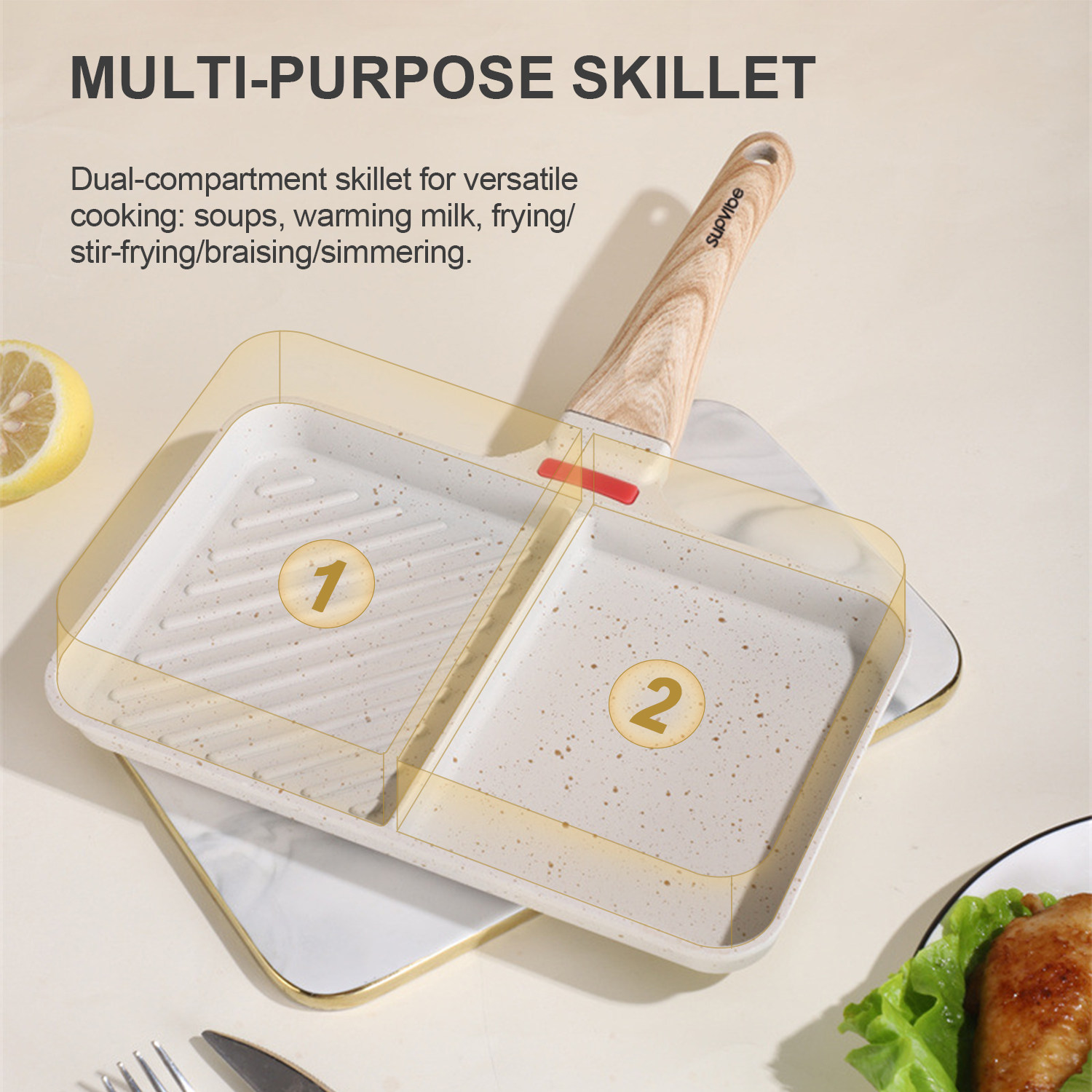 5. Double-compartment frying pan, multi-functional in one pot: making soup, heating milk, frying/stir-frying/stewing/boiling