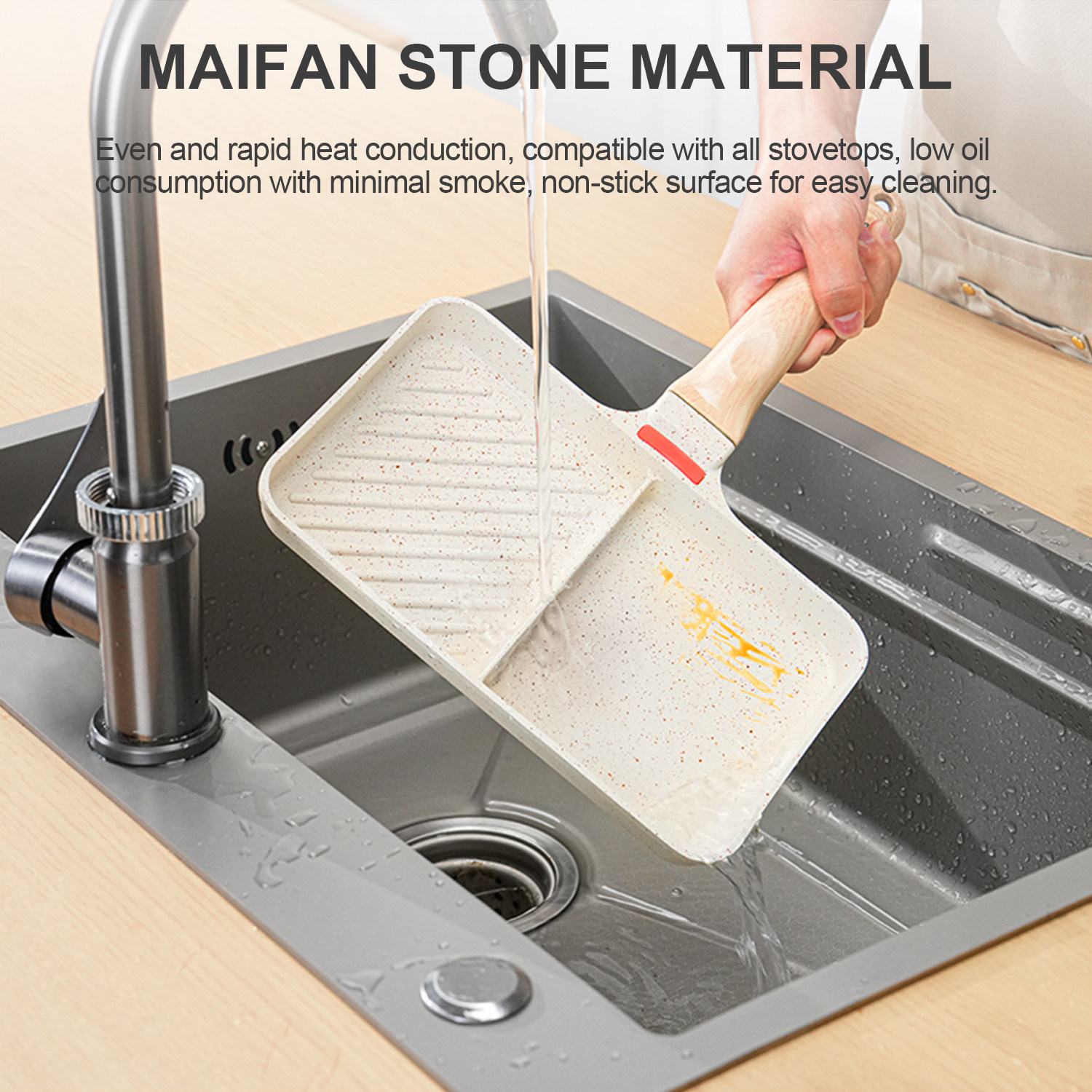 1. Made of tourmaline material (uniform and rapid heat conduction), not picky about stoves, light oil and low smoke, non-stick and easy to clean