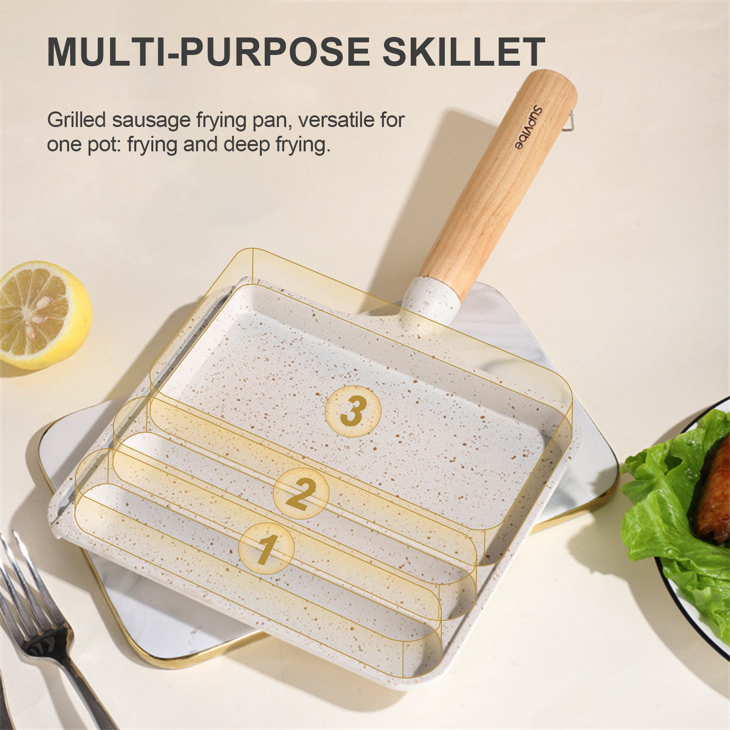 5. Sausage frying pan, multi-functional: Sausage frying, soup making, milk heating, frying/stir-frying/stewing/boiling